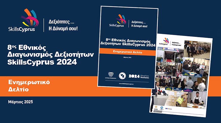 Μεγάλη Επιτυχία για τον 8οΕθνικό Διαγωνισμό Δεξιοτήτων SkillsCyprus 2024 Ολοκληρώθηκε με απόλυτη επιτυχία ο 8οςΕθνικός Διαγωνισμός ΔεξιοτήτωνSkillsCyprus 2024, ο οποίος πραγματοποιήθηκε από τις 28 έως τις 30 Νοεμβρίου 2024 στην Κρατική Έκθεση στη Λευκωσία, από το Κέντρο Παραγωγικότητας (ΚΕΠΑ) του Υπουργείου Εργασίας και Κοινωνικών Ασφαλίσεων υπό την αιγίδα του Προέδρου της Κυπριακής Δημοκρατίας. Ο διαγωνισμός, […]